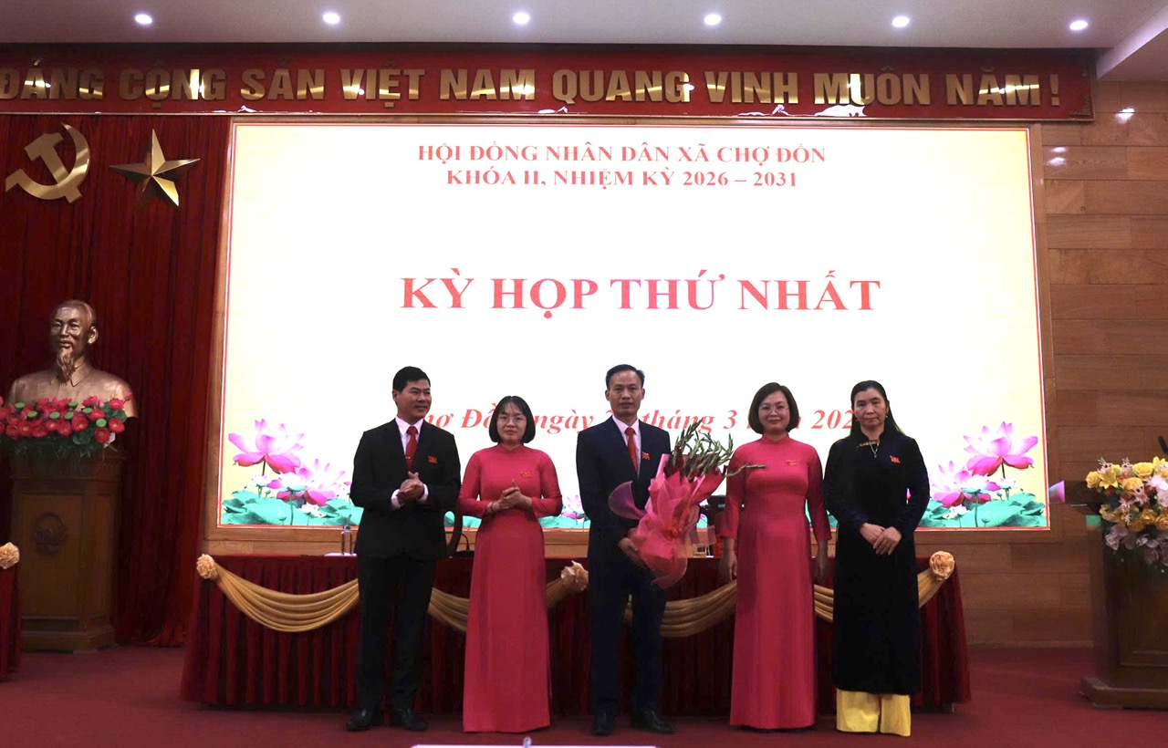 Chiều ngày 27/3, Hội đồng nhân dân (HĐND) xã Chợ Đồn khóa II, nhiệm kỳ 2026 – 2031 tổ chức Kỳ họp thứ nhất nhằm kiện toàn tổ chức bộ máy, bầu các chức danh chủ chốt của HĐND, UBND xã và thông qua một số nội dung quan trọng.