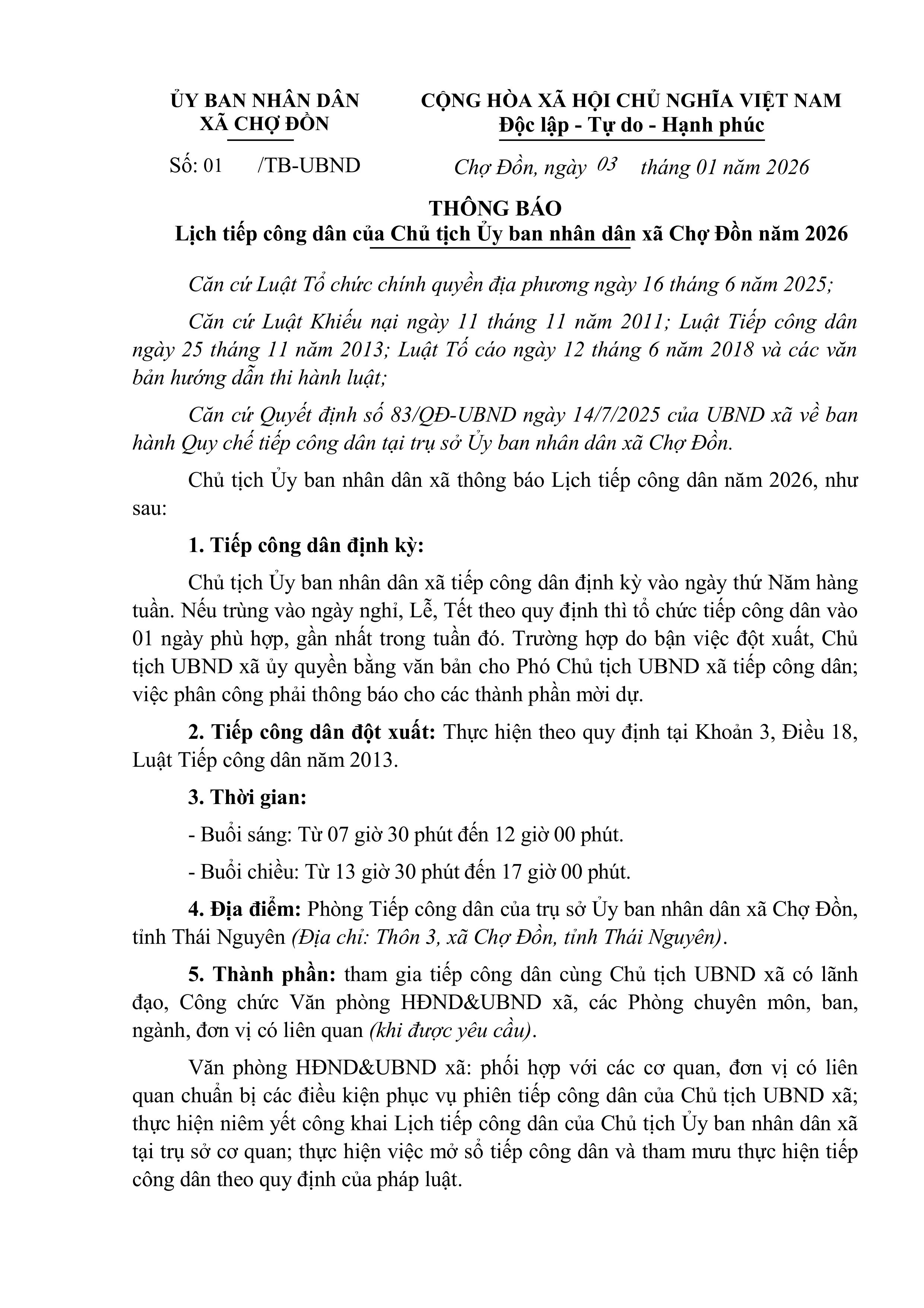 Sáng ngày 08/01, UBND xã Chợ Đồn tổ chức họp triển khai một số nhiệm trọng tâm năm 2026. Đồng chí Trương Quốc Tuân, Phó Bí thư Đảng ủy, Chủ tịch UBND xã chủ trì. Tham dự có lãnh đạo UBND xã, lãnh đạo các phòng, cơ quan chuyên môn, Chỉ huy trưởng Ban Chỉ huy Quân sự, lãnh đạo Công an xã.